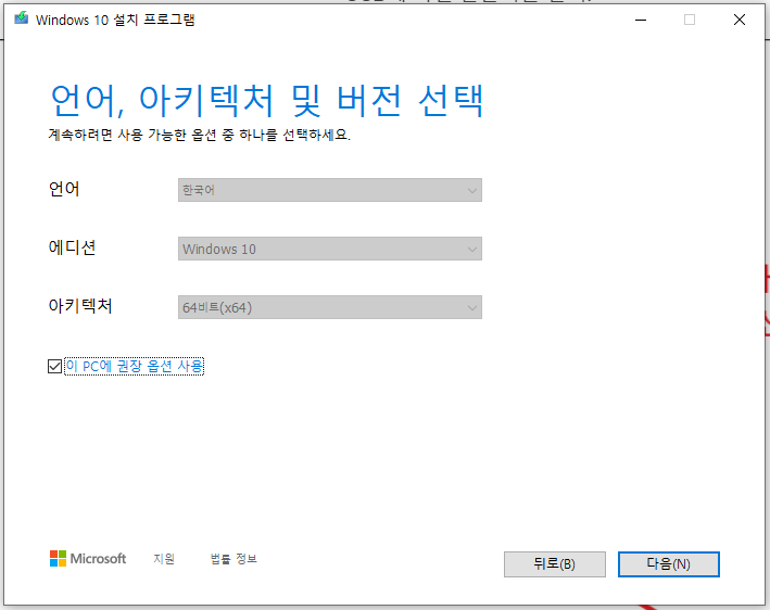 2번 항목의 다른 PC용 설치 미디어 만들기를 선택후 다음을 눌러주세요.