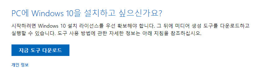 위 링크의 마이크로 소프트 홈페이지로 이동하셔서 지금 도구 다운로드를 클릭해주세요