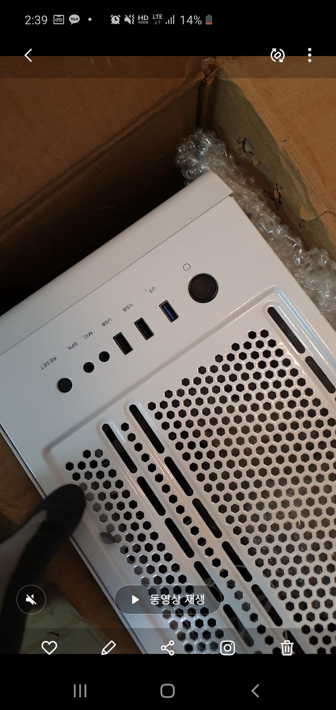 이건 예전에 pc 점검 및 수리를 접수해주셔서 제 작업실로 배송이 온 박스를 그대로 열었을때 상태입니다.